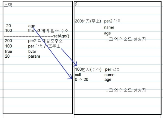 -> age 같은 경우 코드는 하나인데 실행되는게 두개가 될 수 있다. 각 객체에 따른 구분을 하기 위해 무조건 처음에 this 를 생성하게 된다(이 메소드를 가진 객체의 주소!)