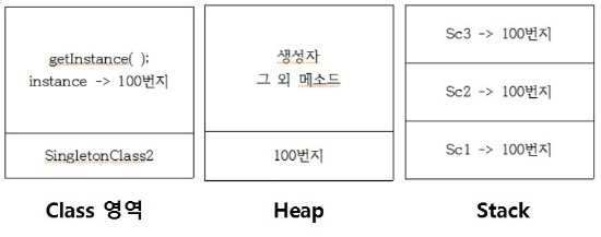 기능을 갖는 클래스 : B.S -> 회원을 관리하는 객체가 여러개 만들어 진다면?? 1, 2, 3번 고객은 1번 관리객체가 갖고, 4, 5 번 고객은 2번 관리객체가 갖는 다면 올바르게 관리가 되지 않는다. 전체리스트를 출력하려고 한다면? -> 문제가 발생하기 때문에 이런 클래스는 객체를 하나만 만드는 것이 좋다.