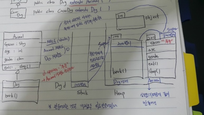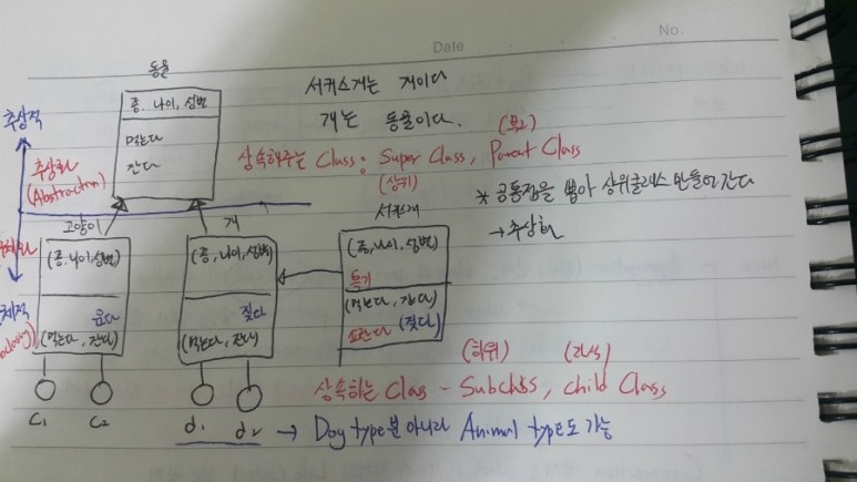- 상속(Inheritance) : 코드의 재사용, Class 들의 타입을 통일하기 위해 사용
