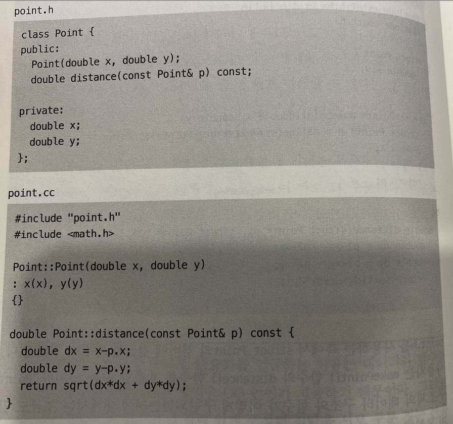 c언어에서의 사용하는 방법인데, point.c로 구현을 하고, point.h 파일로 해당 기능에 대한 선언을 한다. 사용자는 point.h 를 가져가서 사용하게 되는데, 그러면 point 의 내부구조가 어떻게 구성이 되어있는지는 알 수가 없다.