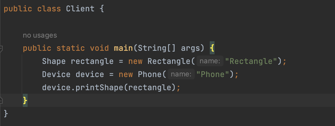 위의 코드와 같이 Device 가 Shape 를 받아서 출력하도록 작성했다.