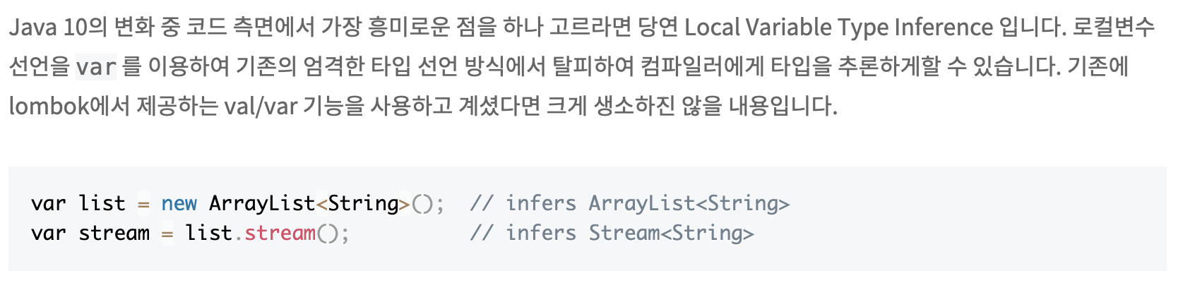 Local-Variable Syntax for Lambda Parameters. 자바 10에서 도입된 var 타입 추론을 업데이트했습니다.