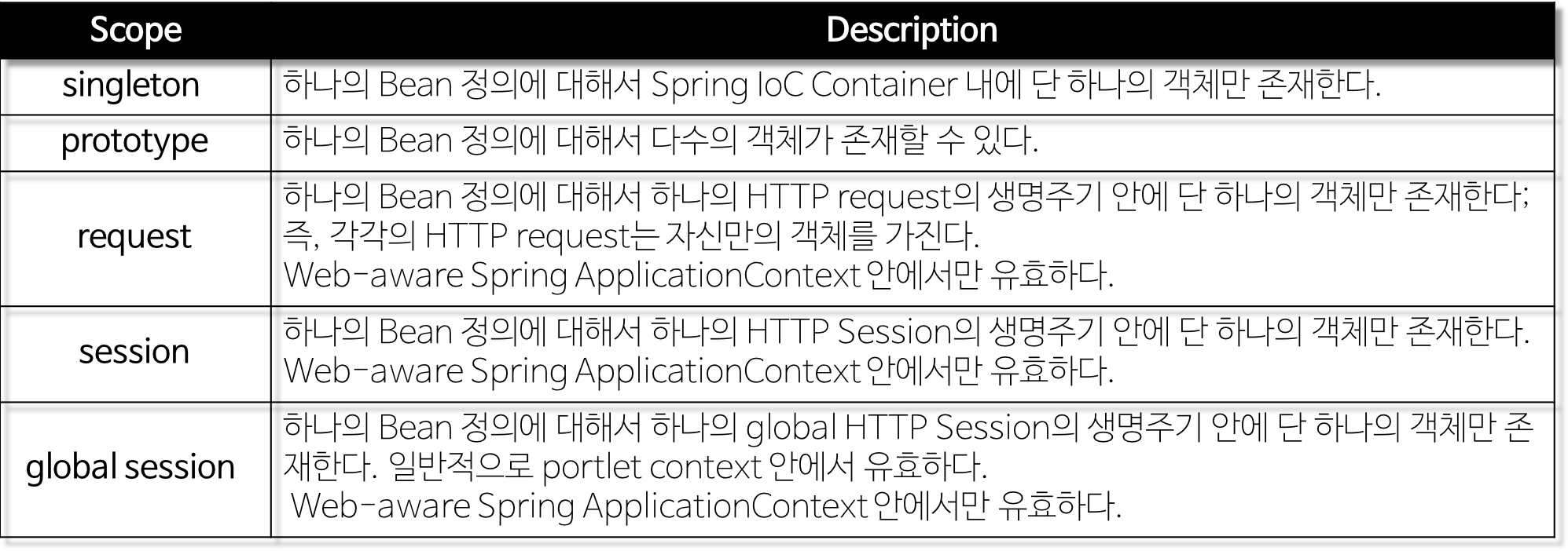 - 인스턴스의 스코프를 제어한다