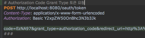 리다이렉트된 페이지에서 위에서 발급 받은 권한 부여 코드로 권한 서버에 Access Token을 요청 받을 수 있습니다. 이 부분이 실제로 구현하지 않았고 넘겨 받은 권한 부여 코드를 기반으로 권한 서버에 수동으로 호출 해보겠습니다.